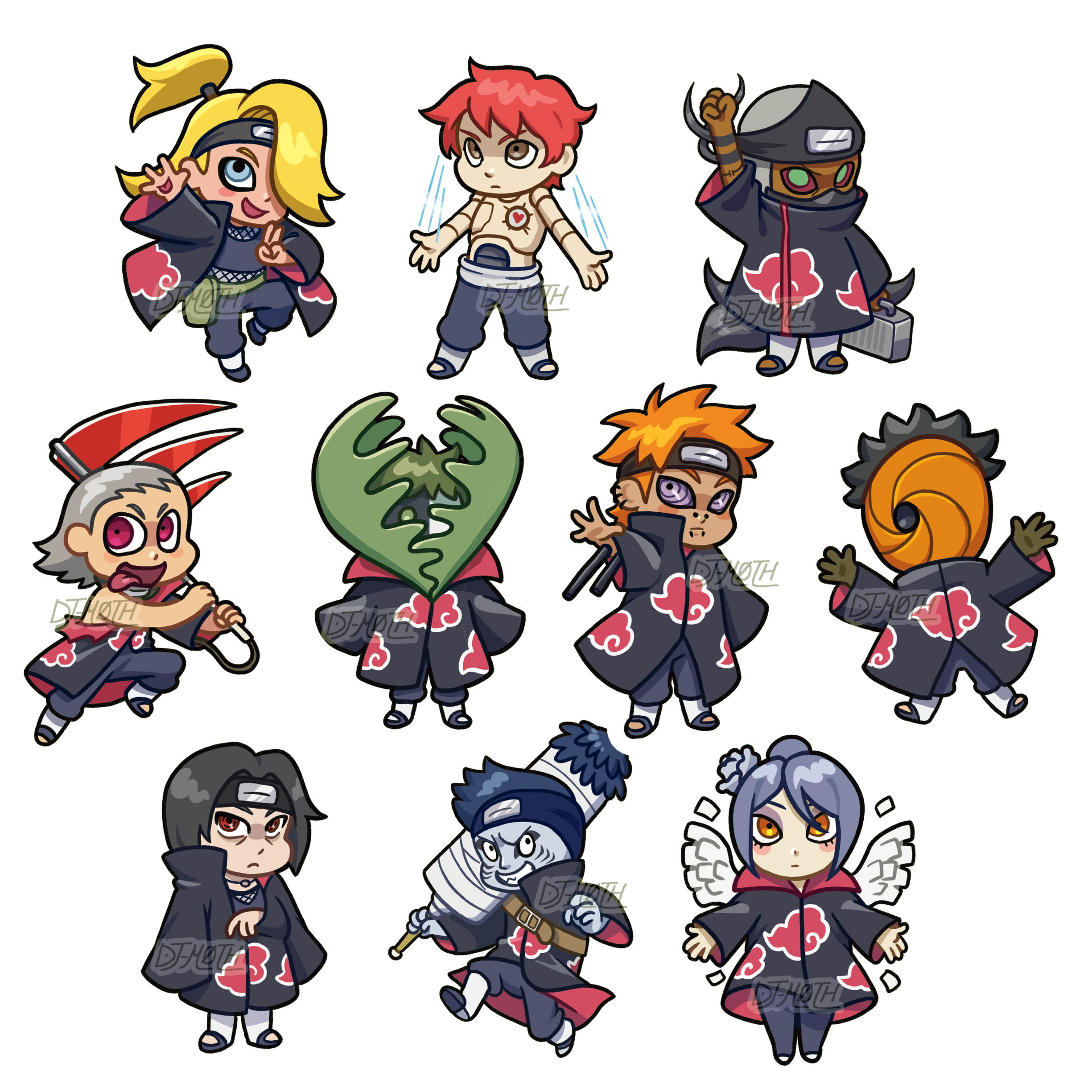 4 cm paper stickers of the Akatsuki.The set of 10 includes: