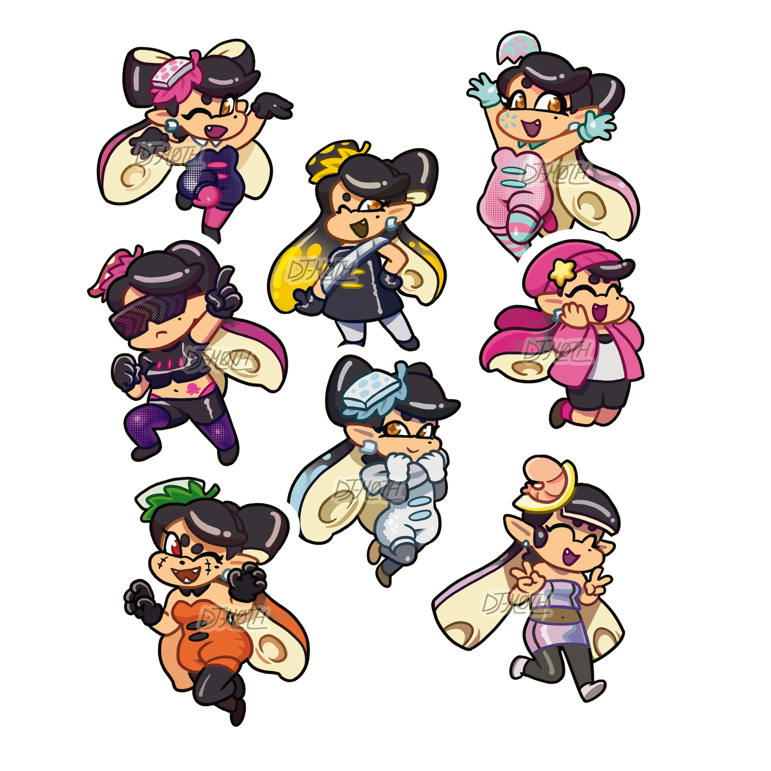 4 cm paper stickers of Callie from Splatoon.The set of 8 includes: