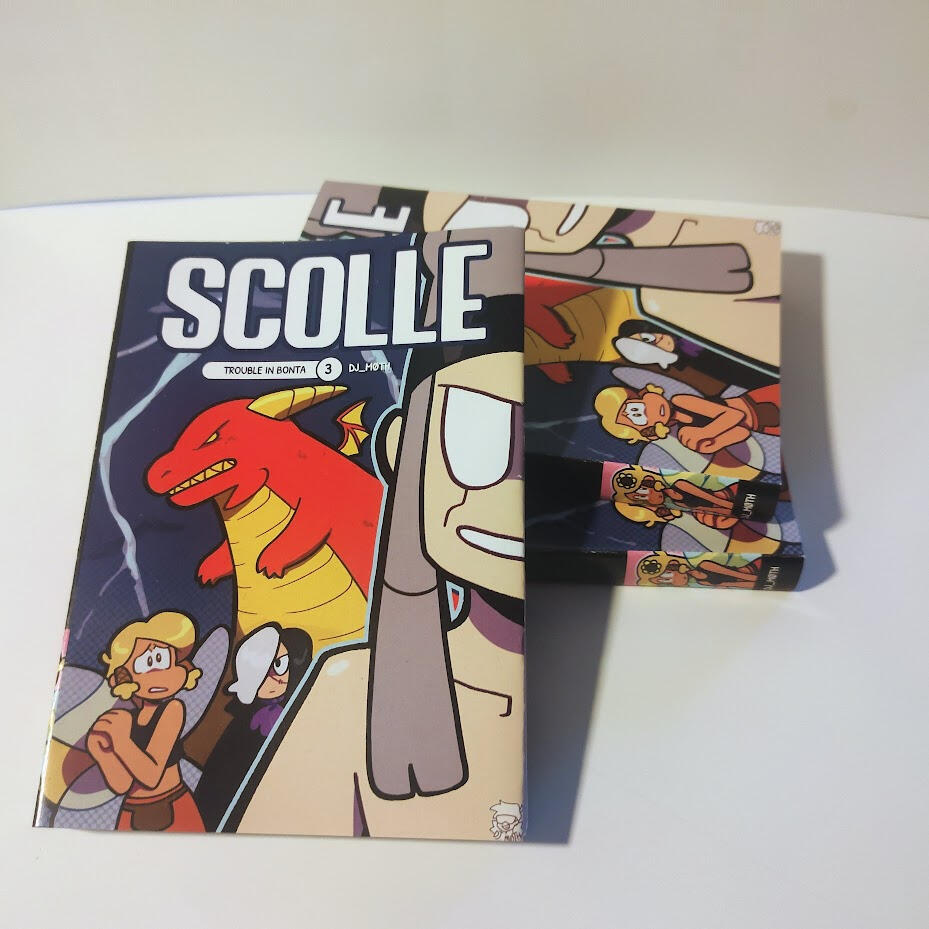 The physical edition of all existing Scolle volumes. This pack includes volumes 1 to 3 of Scolle with a 10% discount.Everything is handmade please excuse possible small flaws. If there is no existing stock, the order will be made within 10 days of the purchase.Available in English, Spanish and French (translated by @bitterpanacea on Twitter.)Approximate weight: 690g