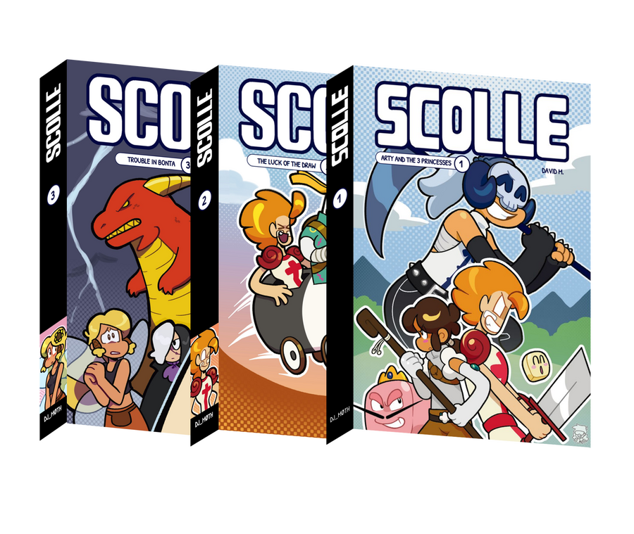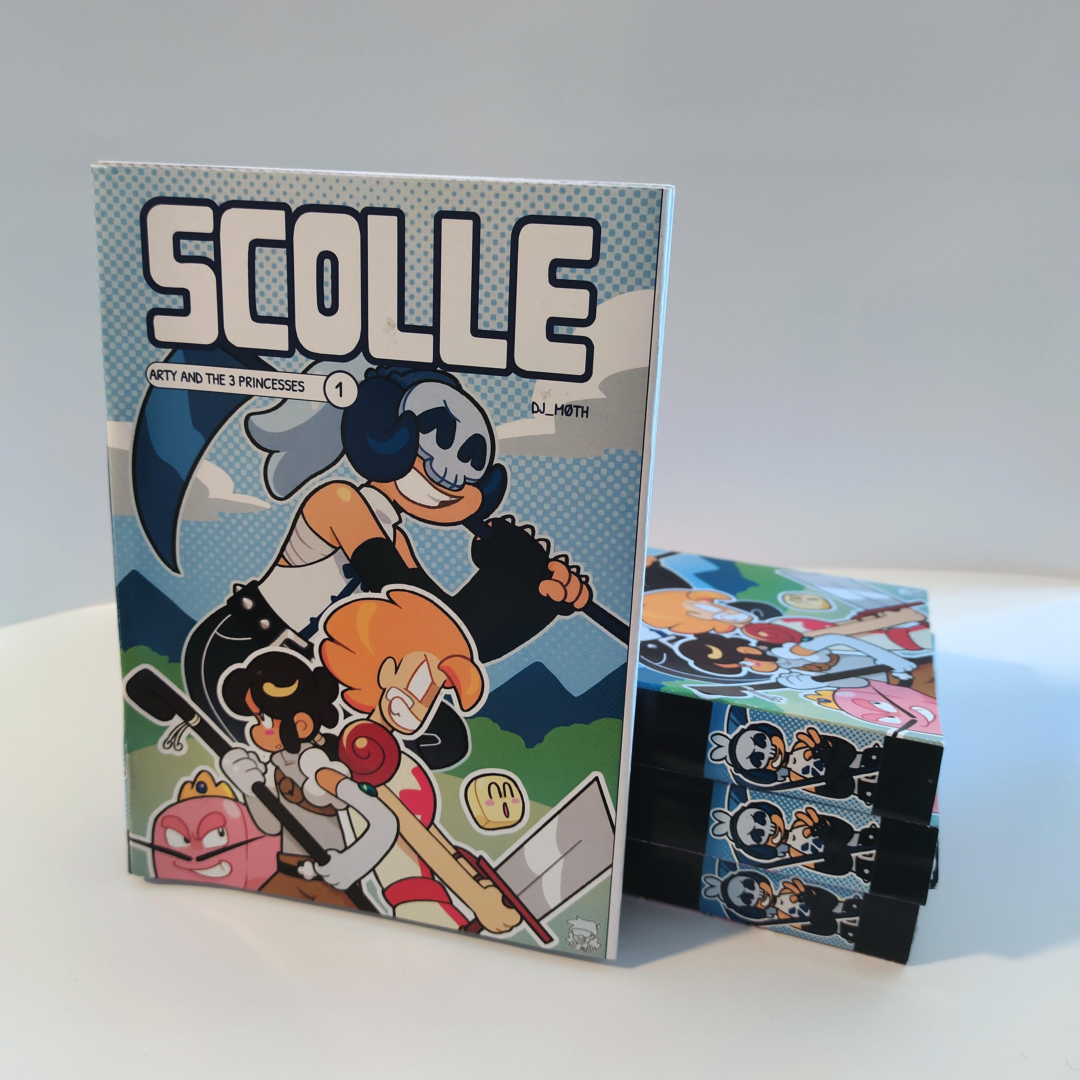 Buy the entirety of the Scolle collection with a 15% discount.This pack includes Volumes 1, 2 and 3 of Scolle, alongside their sticker packs, as well as the Arty and Goultard enamel pins.