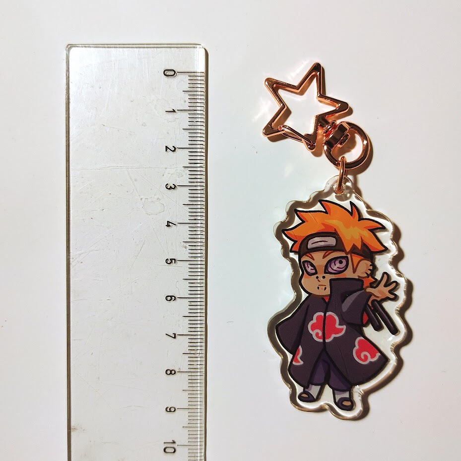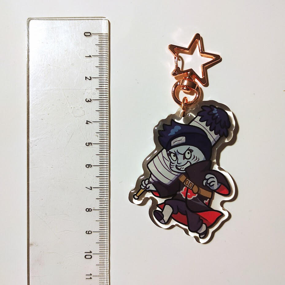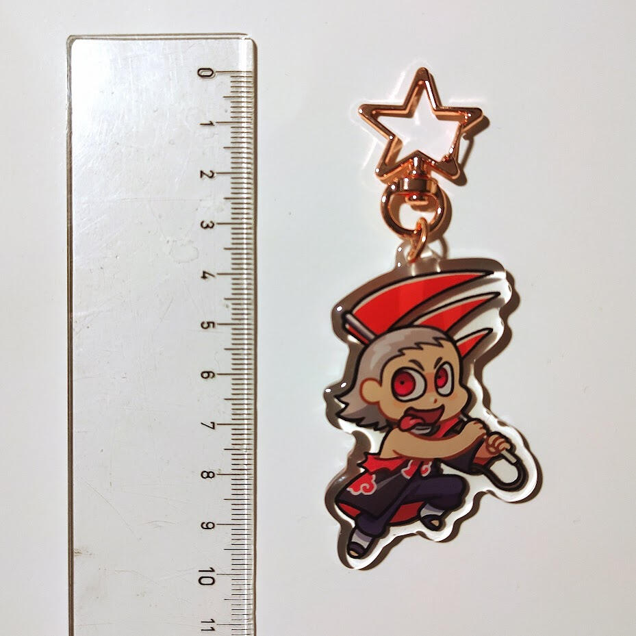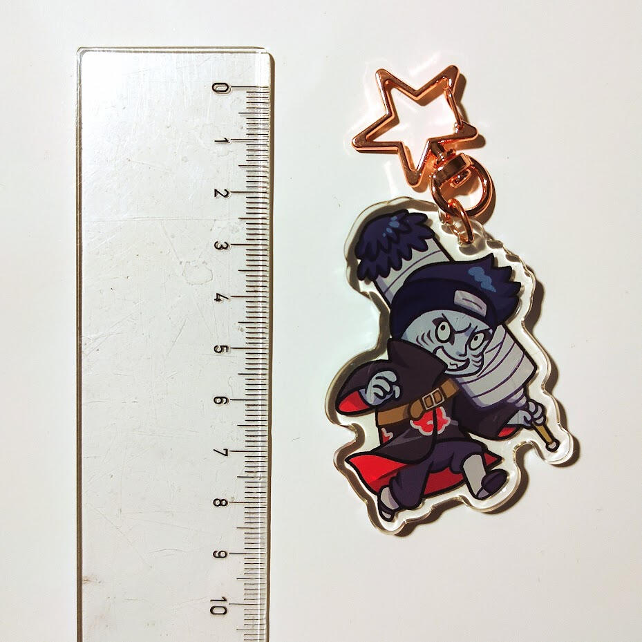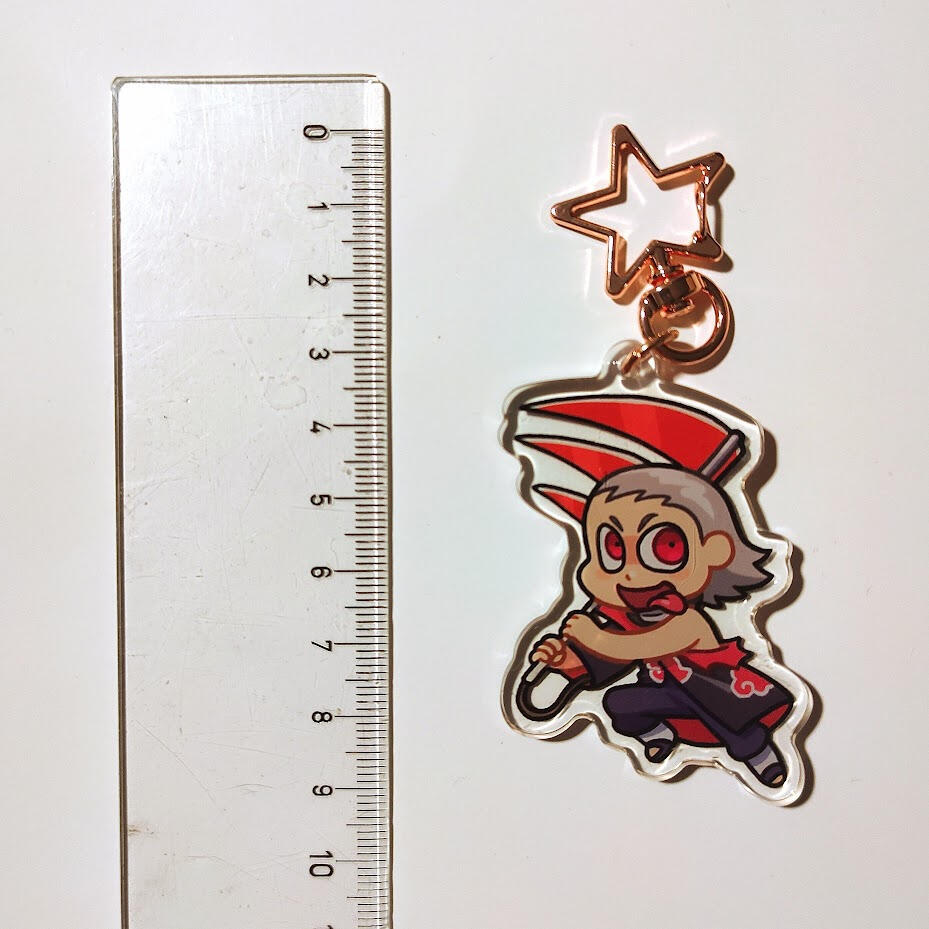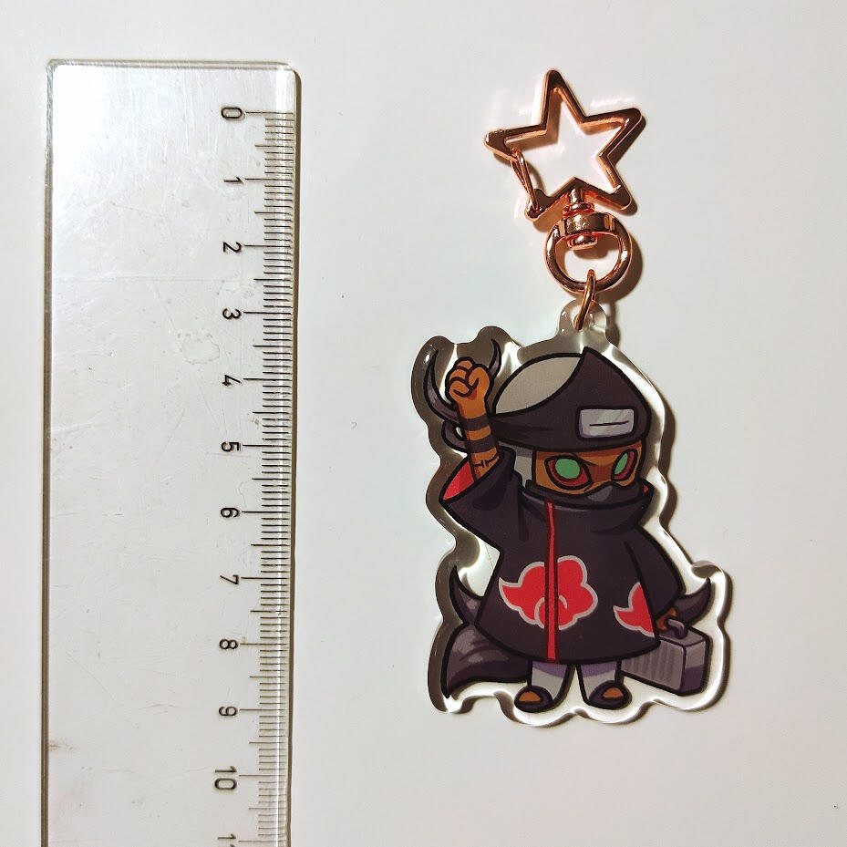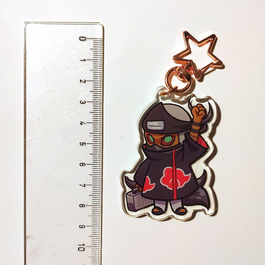 Acrylic keychain with epoxy finish of the Akatsuki. The keychains measure 6cm and include a metal clasp.Please note that the scratches on the sample pictures are on the protective sheet covering the keychains. Once removed, the acrylic has no scratches.The keychains may be bought in a set (50€ / 10 keychains), by teams (12€ / 2 keychains) or individually (7€ / keychain).Approximate weight: 16g/keychain