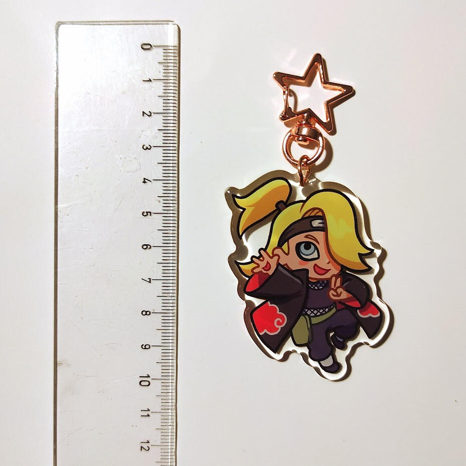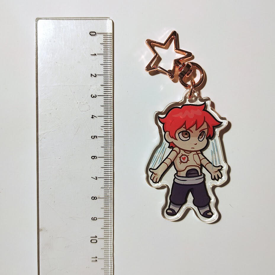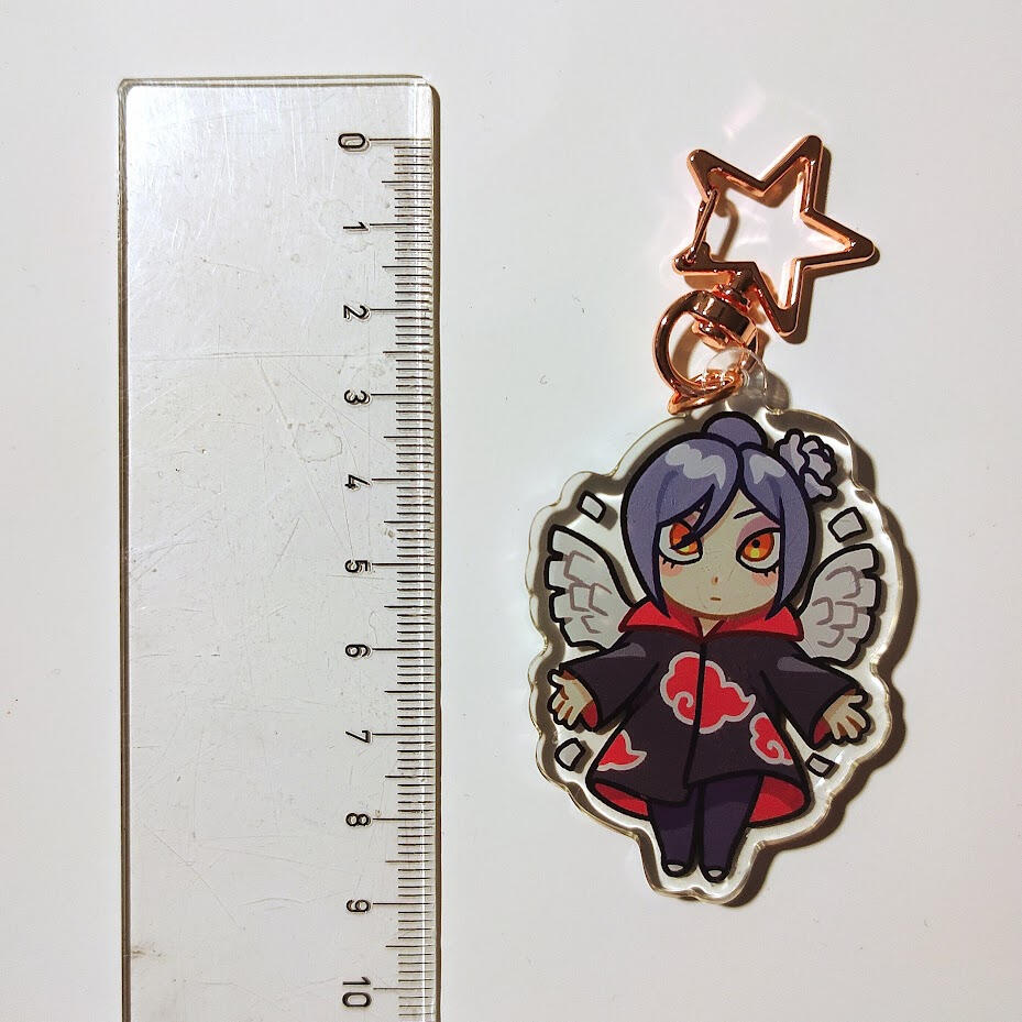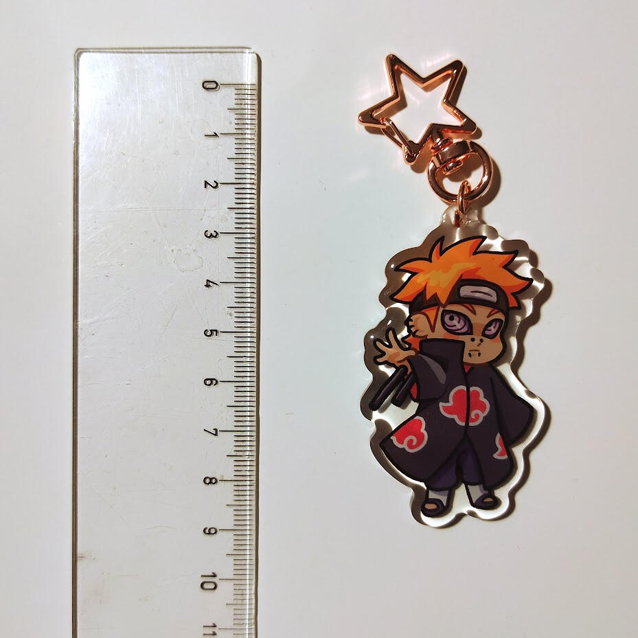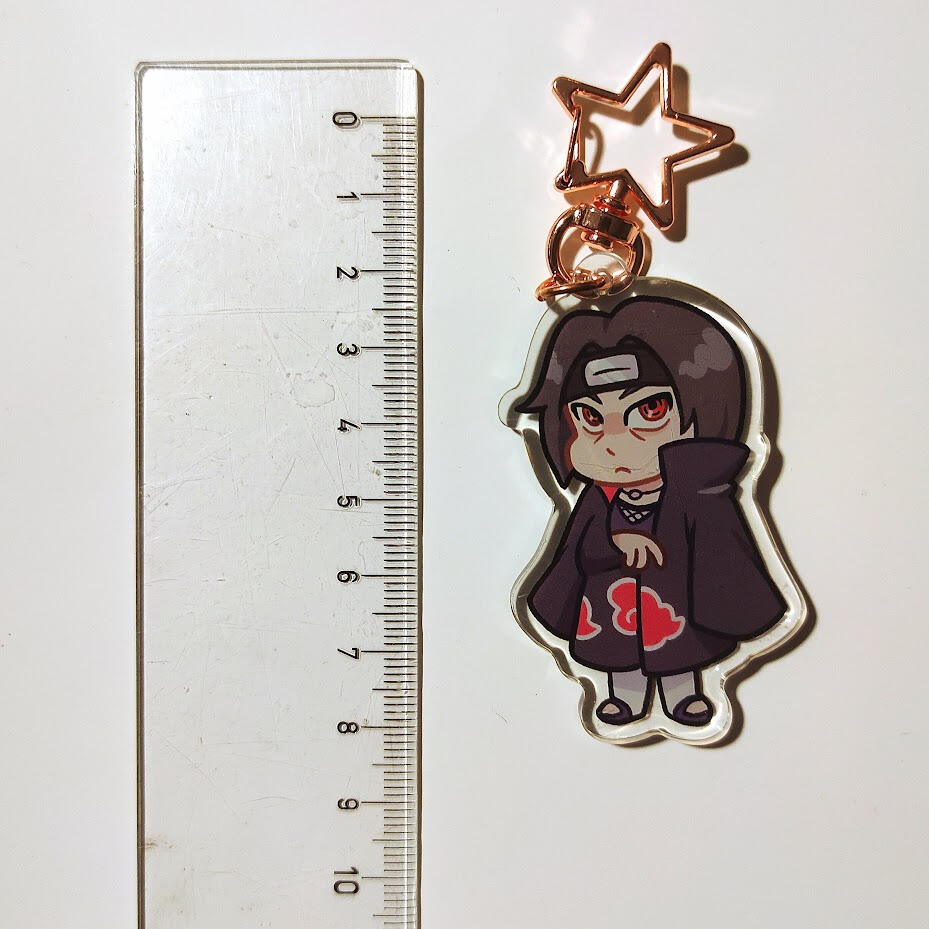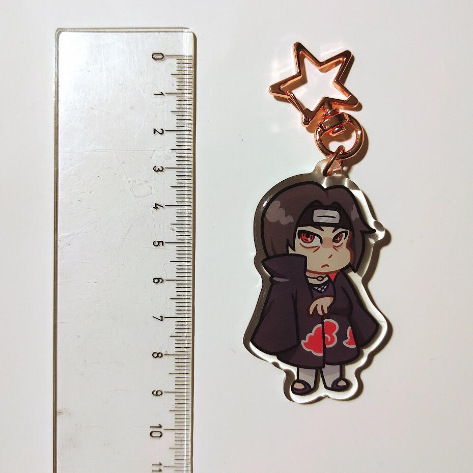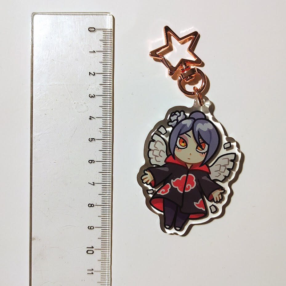 Acrylic keychain with epoxy finish of the Akatsuki. The keychains measure 6cm and include a metal clasp.Please note that the scratches on the sample pictures are on the protective sheet covering the keychains. Once removed, the acrylic has no scratches.The keychains may be bought in a set (50€ / 10 keychains), by teams (12€ / 2 keychains) or individually (7€ / keychain).Approximate weight: 16g/keychain