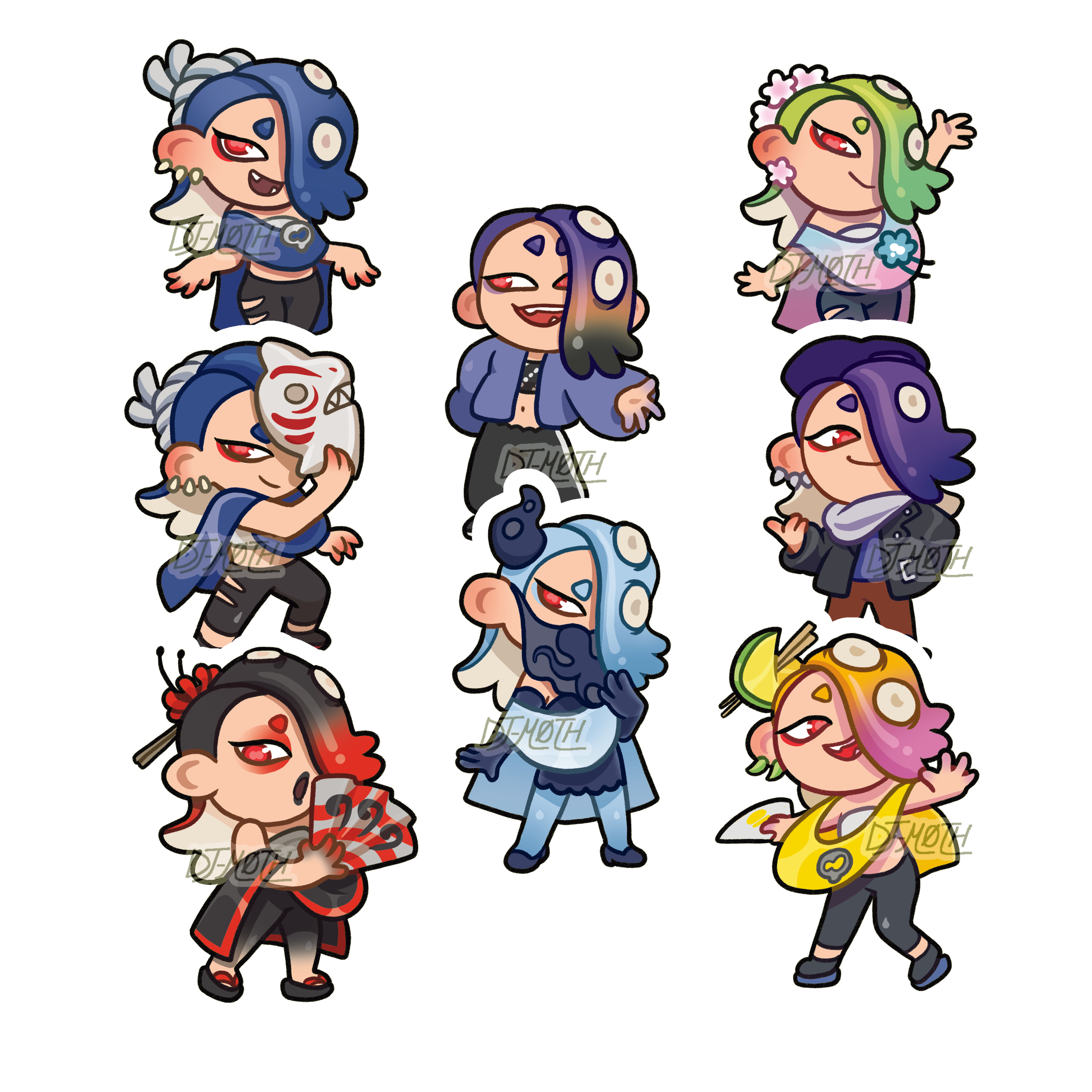 4 cm paper stickers of Callie from Splatoon.The set of 8 includes: